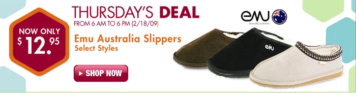 Thursday 2/19 only – Emu Australia Slippers, Special Group only $12.95!