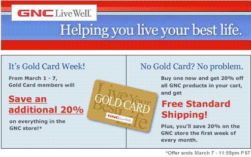 Buy select GNC Mega Men’s or GNC Women’s Ultra Mega products and get free shipping! Expires 6/30/2008