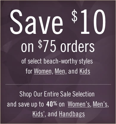 Save $10 on $75+ orders of selected beach worthy styles at Endless Sale
