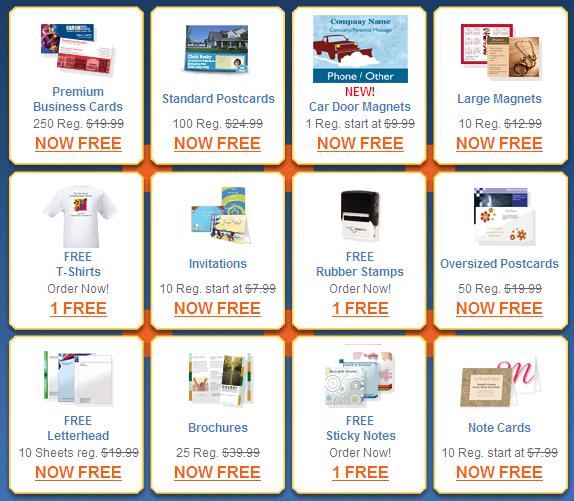FREE Business Cards + FREE Glossy, Standard Postcards, Car Door Magnets, Oversized Postcards, Large Magnets, Small Magnets, FREE T-Shirts, Invitations, Annnouncements, Letterhead